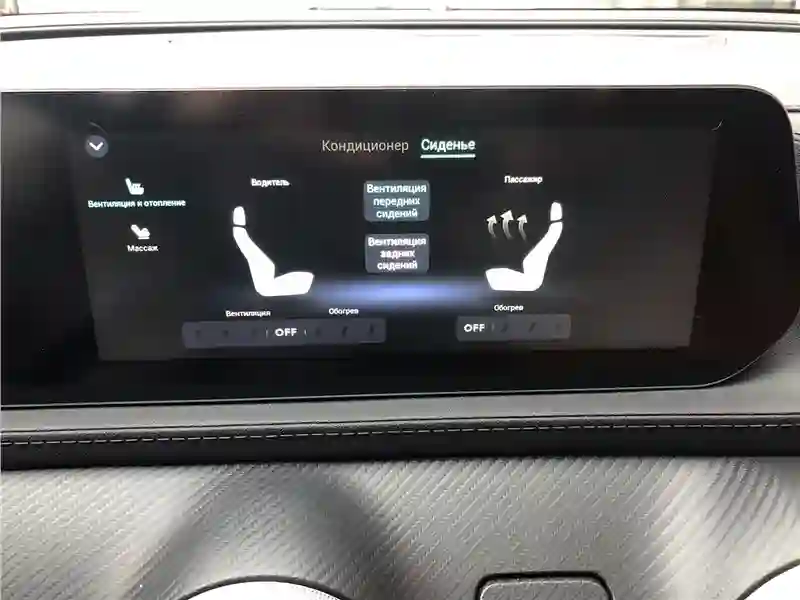 Доступ в машину бесключевой, как и запуск двигателя – да-да, хоть EVOLUTE i‑SKY и электрокар, но кнопка «старт/стоп» на передней панели есть, сев в автомобиль, надо его включить, прежде чем поехать, не как в некоторых китайских «электричках», которые готовы к работе сразу после отпирания – сел на место водителя и сразу можешь включать передачу и нажимать педаль газа. Водительское кресло EVOLUTE i‑SKY с интегрированным в него подголовником, несмотря на вроде бы плоскую подушку и спинку, удобно, у спинки выраженные валики боковой поддержки, регулировок хватает, включая поясничный подпор и регулировку руля не только по наклону, но и по вылету. У EVOLUTE i‑SKY есть полный зимний пакет, подогрев всех сидений, вентиляция передних, а у водительского кресла – еще и пятирежимный массаж. Приятно, что климатическая установка настраивается не через экран, а двумя поворотными «шайбами». Еще у EVOLUTE i‑SKY есть автономный отопитель салона, так что проблема недостатка тепла, которое в машине с ДВС обеспечивает двигатель, а в электромобиле – нет, решена.